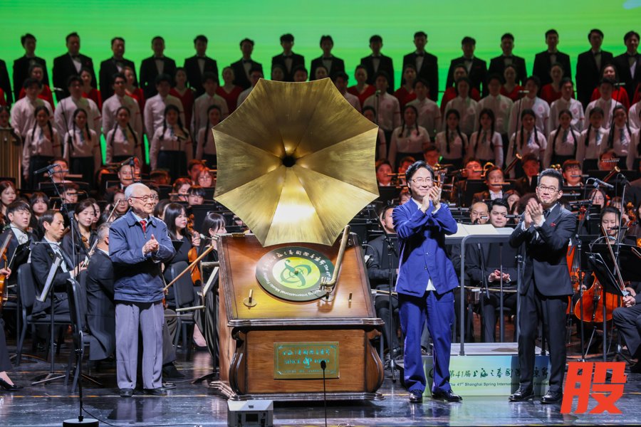 北外滩友邦大剧院3月26日晚灯光璀璨,第41届上海之春国际音乐节(以下简称“上海之春”)正式启幕。开幕仪式上,“七一勋章”获得者、著名作曲家吕其明,上海音乐学院院长、男中音歌唱家廖昌永,上海歌剧院院长、男高音歌唱家石倚洁共同启动音乐节开幕装置留声机。
